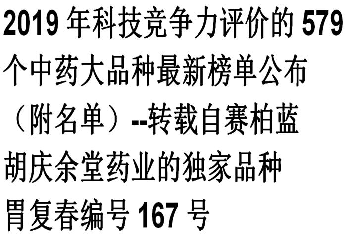 2019年科技竞争力评价的579个中药大品种最新榜单公布(附名单)--转载自赛柏蓝(jinnian金年会药业的独家品种胃复…